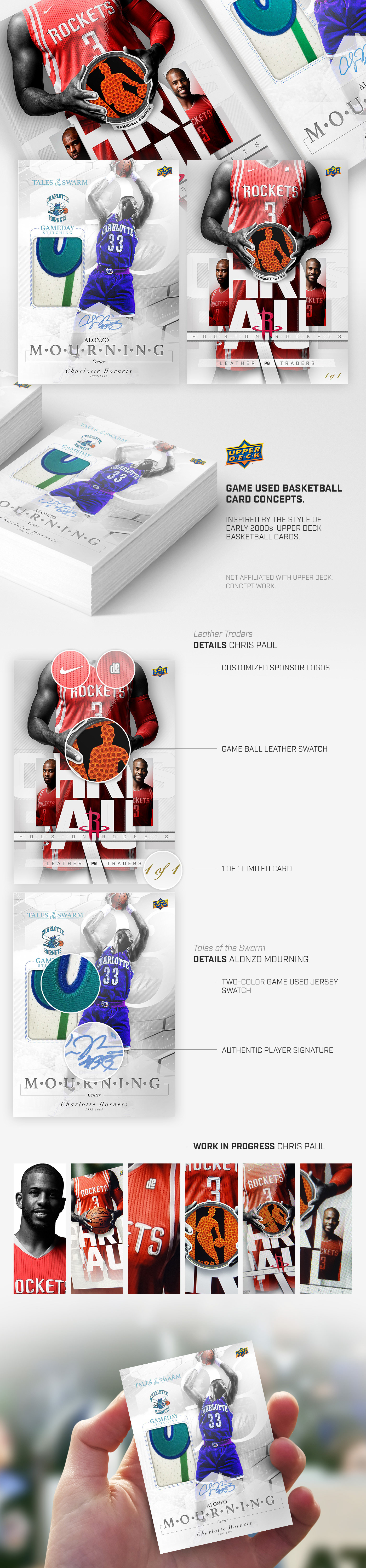 NBA Basketball collector cards concepts based on 2000s Upper Deck styling with game used elements